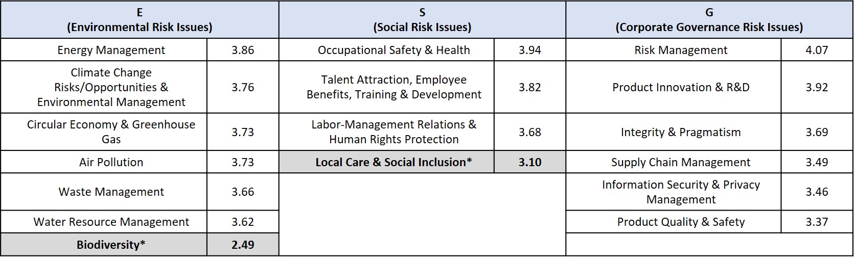 1. Identification, Analysis and Assessment of Key Risk Issues